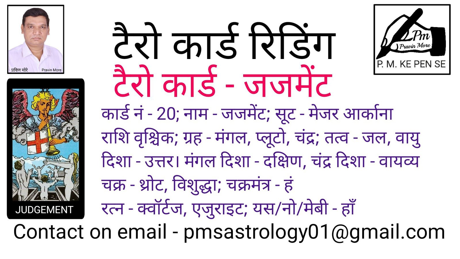 जजमेंट कार्ड टैरो डेक का 20वा कार्ड हैं, इसका सूट मेजर आर्काना हैं।